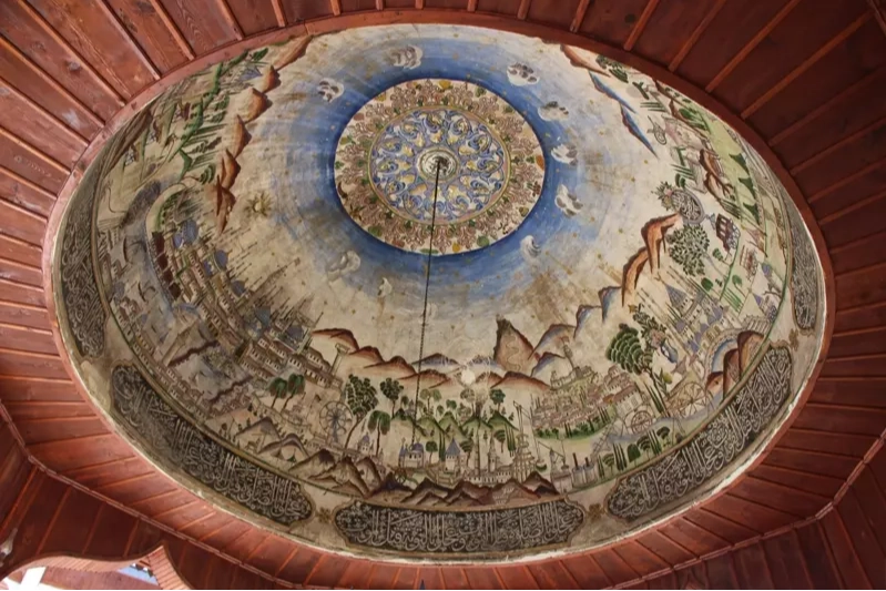 360 yıllık caminin ahşap şadırvanının külah kısmına 1865 yılında işlenen minyatür, geç dönem Osmanlı resim sanatının önemli örnekleri arasında değerlendiriliyor. Eserde farklı coğrafyalardan sahnelerin bir araya getirilmesi, dönemin sanatsal ve kültürel anlayışına dair ipuçları sunuyor.
