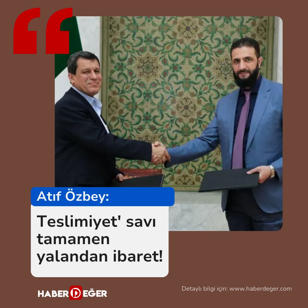 Özbey, "Bu antlaşmanın, Kuzey Suriye’deki Kürt oluşumları açısından bir 'teslimiyet' olduğu savı tamamen yalandan ibarettir. Bu dezenformasyon haberinin devletin resmi kanalı TRT tarafından yapılmış olması tüm vicdanları yaralamıştır. Suriye’de yaşayan Kürt toplumu, bu antlaşma ile kurucu unsur olarak kabul edilmiş ve haklarının da anayasal güvence altına alınacağı teyit edilmiştir." dedi.