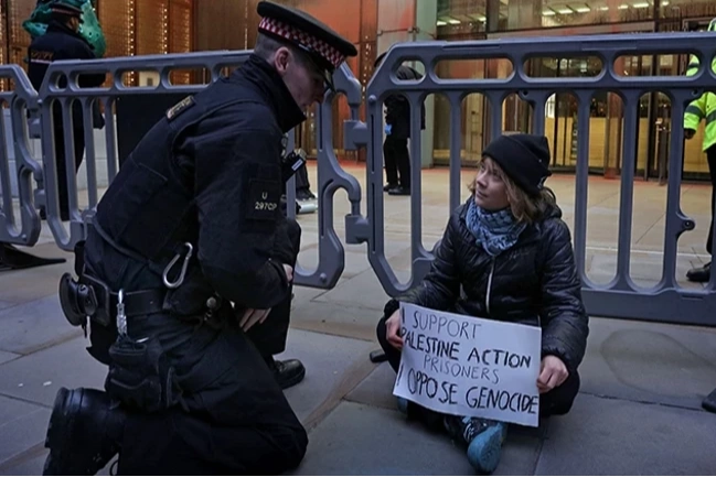 İngiltere merkezli kampanya grubu Defend Our Juries, Thunberg’in İngiliz hükümeti tarafından “terör örgütü” ilan edilen Palestine Action ile bağlantılı tutuklulara destek içerdiği belirtilen bir pankart taşıdığı gerekçesiyle gözaltına alındığını duyurdu.