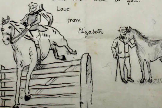 Elizabeth II’in çocukluk yıllarında kaleme aldığı el yazısı bir mektup açık artırmaya çıkarılıyor. Tek sayfalık notta köpek, at ve çocuk çizimleri yer alırken müzayede yetkilileri mektubun yaklaşık 4 bin sterline kadar alıcı bulabileceğini belirtiyor.