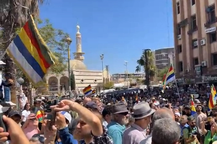 Göstericiler, Şam yönetimine bağlı güvenlik güçlerinin Süveyda’dan tamamen çıkarılmasını talep ederek, Dürzi halkının kendi geleceğini belirleme hakkına sahip olduğunu vurguladı.