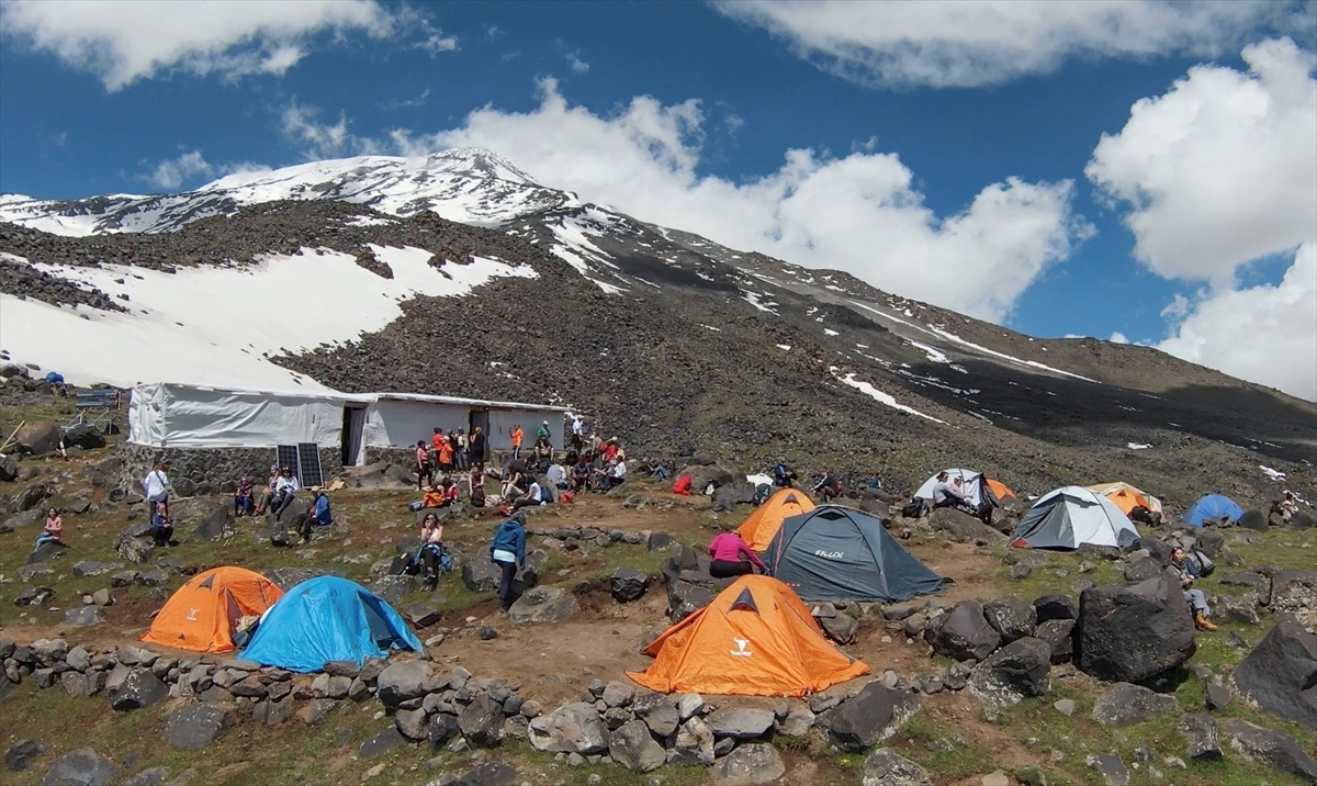 IĞDIR (AA) - HÜSEYİN YILDIZ/ABDULLAH SÖYLEMEZ - Türkiye’nin en yüksek dağı olan Ağrı Dağı zirvesine uzanan yolcluğun buluşma noktası olan ana kampta, dünyanın farklı bölgelerinden gelen dağcılarla panayır havası yaşanıyor.