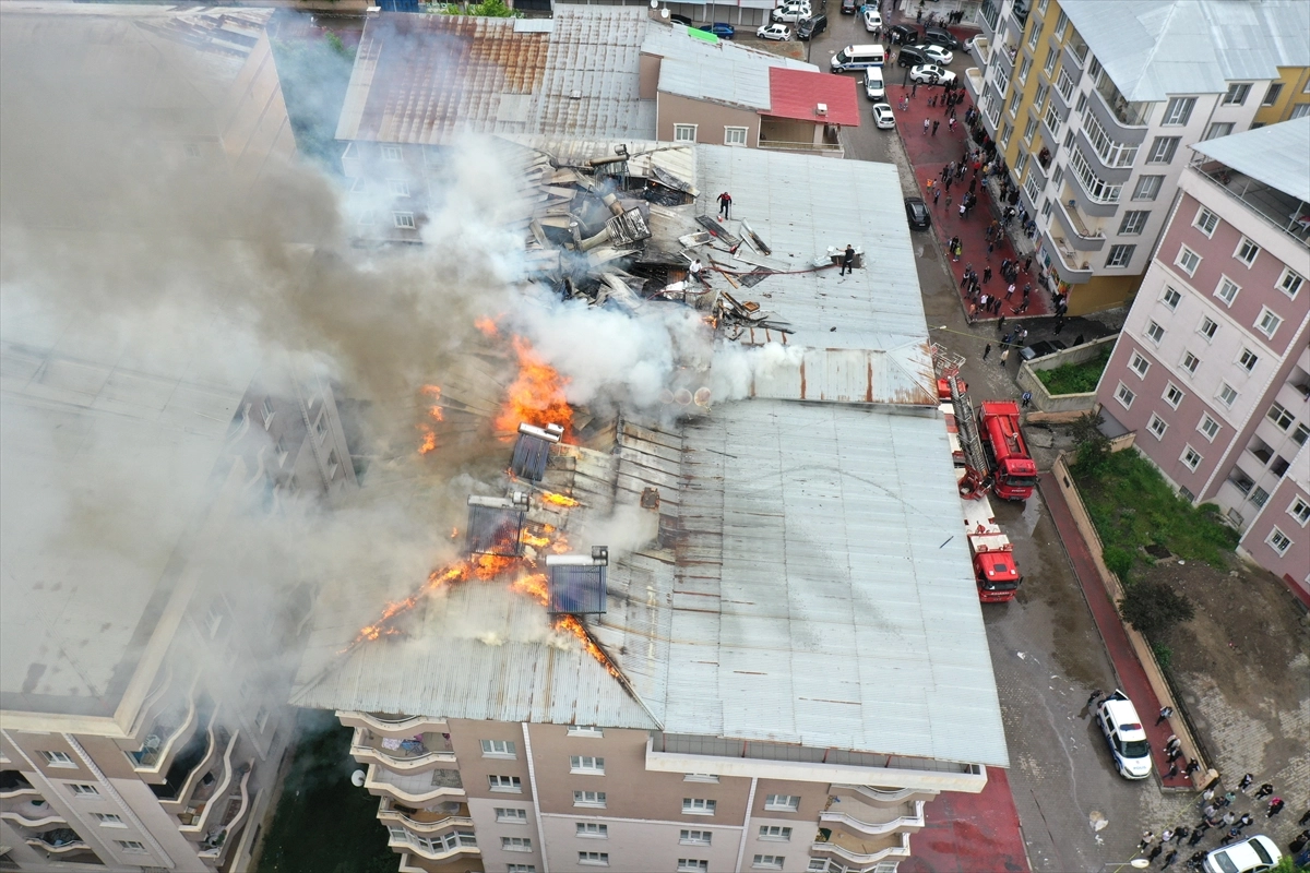 AĞRI (AA) - Ağrı'da 6 katlı binanın teras katında çıkan ve çatıya sıçrayan yangın, güçlükle kontrol altına alındı.