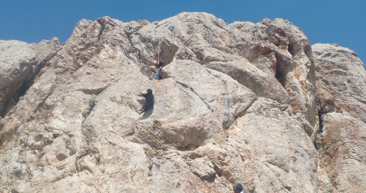 AĞRI (AA) - Ağrı'nın Eleşkirt ilçesinde kayalıklarda mahsur kalan 3 oğlak, AFAD ekiplerince kurtarıldı.