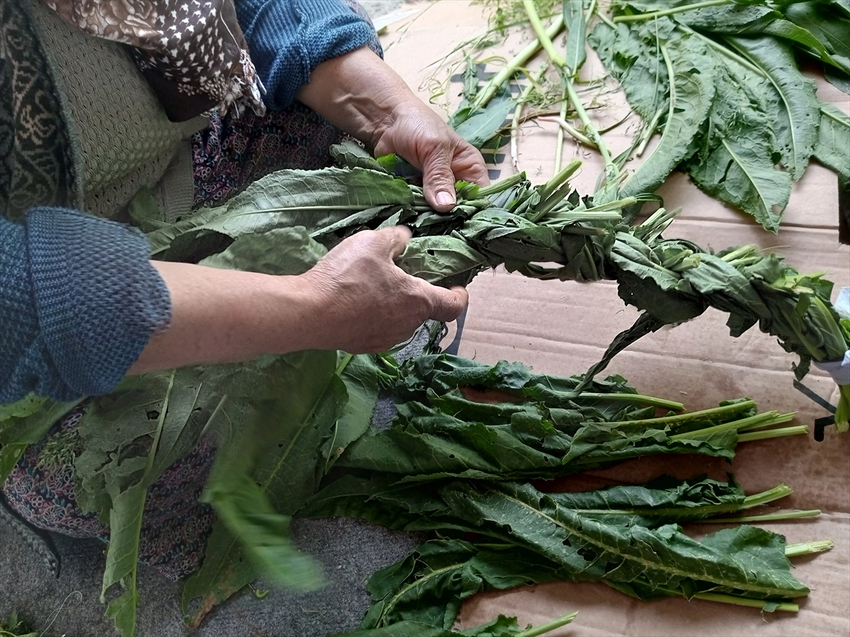 Kadınlar topladıkları bitkileri daha sonra güneşte kurutarak kışa saklıyor.