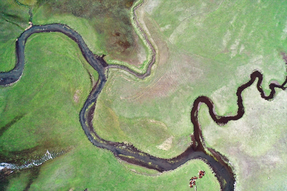 AĞRI (AA) - Ağrı'nın Doğubayazıt ilçesinde yüksek rakımlı dağlardan eriyen kar sularıyla beslenen menderesler dronla görüntülendi.