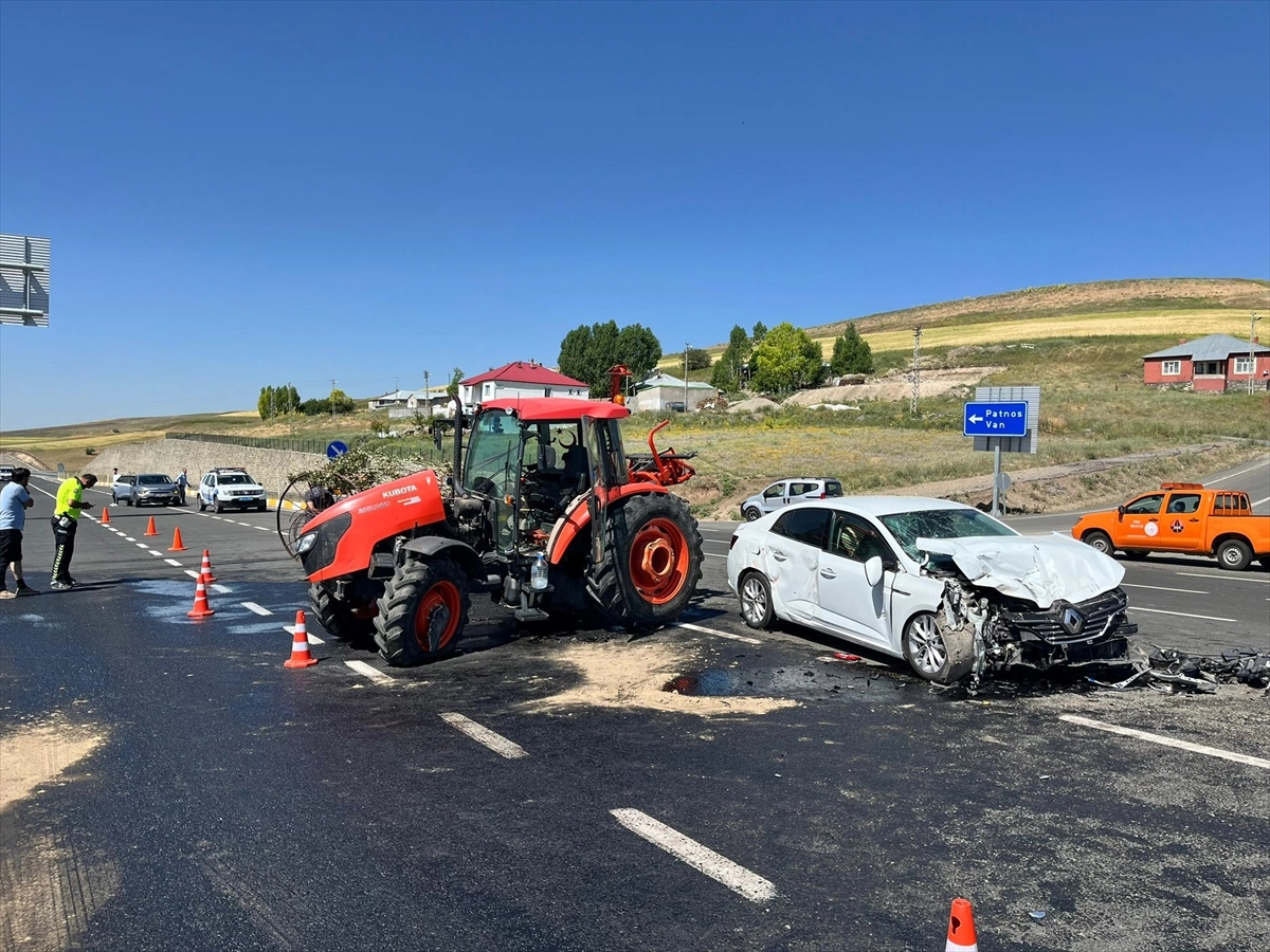 AĞRI (AA) - Ağrı'nın Tutak ilçesinde otomobil ile traktörün çarpışması sonucu 3 kişi yaralandı.
