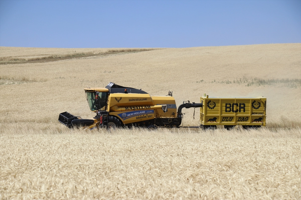 Binlerce dönümlük alanda olgunlaşan buğdayın hasadı, biçerdöverler ve biçerlerle sıcak havada yapılıyor.