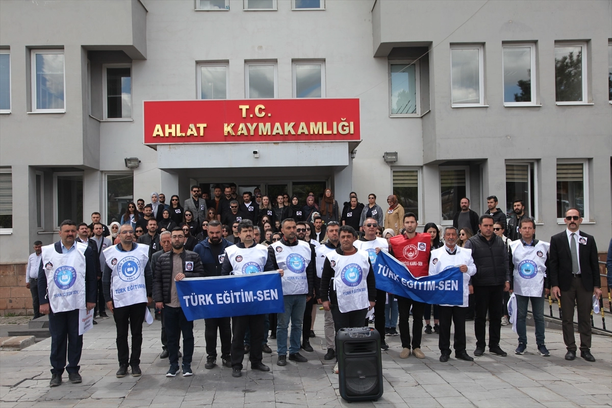 Ahlat Kaymakamlığı önünde toplanan öğretmen ve idareciler adına açıklama yapan Türk Eğitim-Sen Bitlis Şube Başkanı Ünal Gürbüz, eğitim camiasında yaşanan şiddet olaylarını kınadıklarını söyledi.