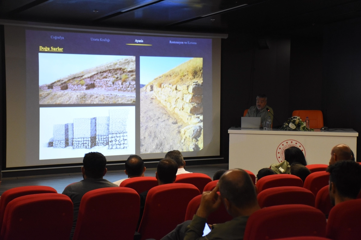 VAN (AA) - Akademisyenler, Van Kültür Yolu Festivali kapsamında düzenlenen "Geleceğe Miras Projesi Konuşmaları" konulu söyleşide kentteki Urartu yapılarıyla ilgili katılımcıları bilgilendirdi.