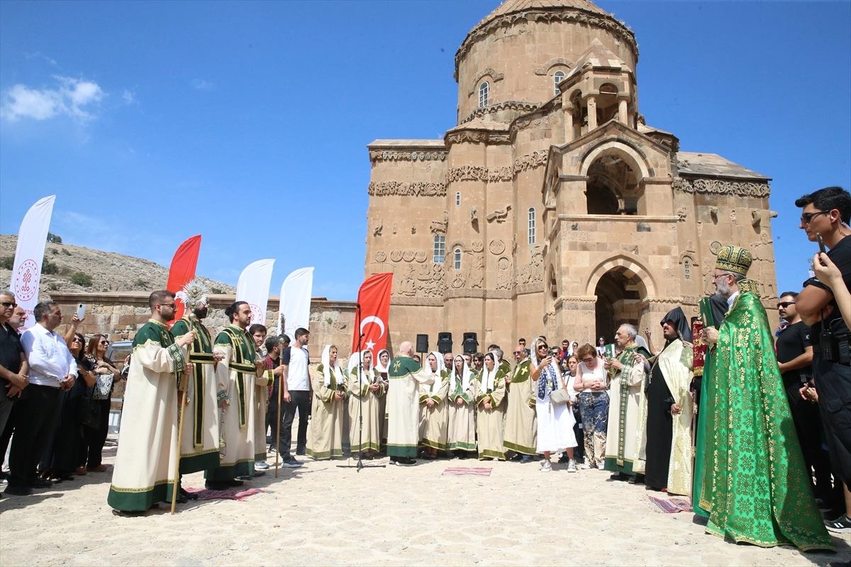 Akdamar Kilisesi'nde Türkiye Ermenileri Patrikliğine mensup din adamları ve ziyaretçilerin katılımıyla gerçekleştirilen ayini Uzunyan yönetti.