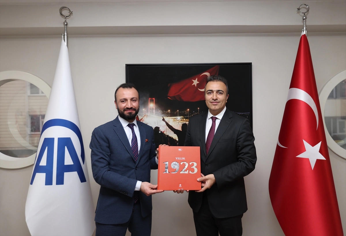 Bölge Müdürü Okur da Vali Çiçek’e AA'nın yayınlarından "Yıllık 1923" kitabını hediye etti.