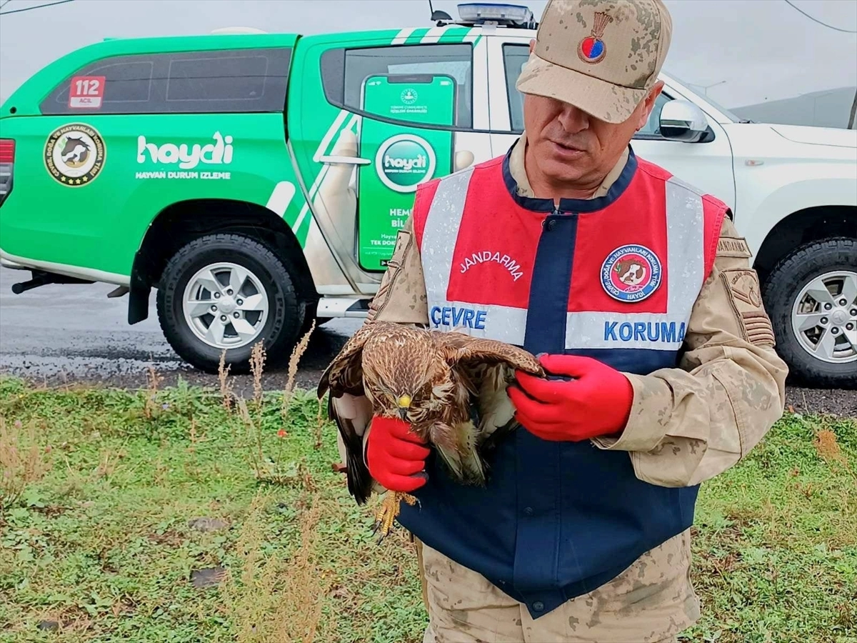 Çıldır ilçesinde devriye görevi yapan İl Jandarma Komutanlığı Asayiş Şube Müdürlüğüne bağlı Çevre, Doğa ve Hayvanları Koruma Timi (HAYDİ), yaralı ve bitkin bulduğu kızıl şahini koruma altına aldı.