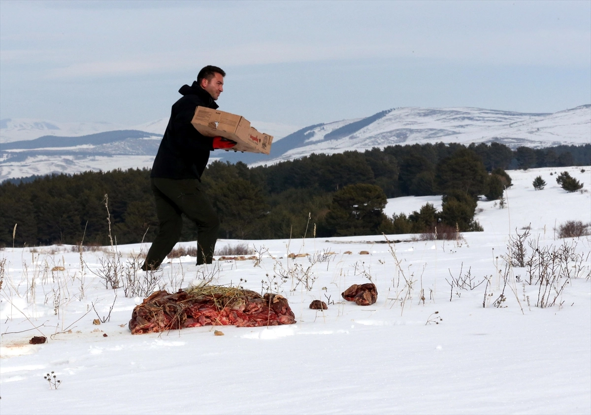 ARDAHAN (AA) - Ardahan'da yoğun kar nedeniyle yiyecek bulmakta güçlük çeken yaban hayvanları için doğaya yem bırakıldı.