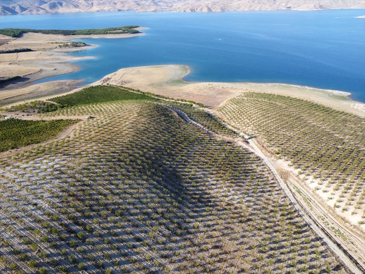 ELAZIĞ (AA) - SUAT ÖZTÜRK - Elazığ'da Keban Baraj Gölü kıyısındaki atıl arazileri badem bahçelerine dönüştüren üreticilerin hasat heyecanı başladı.