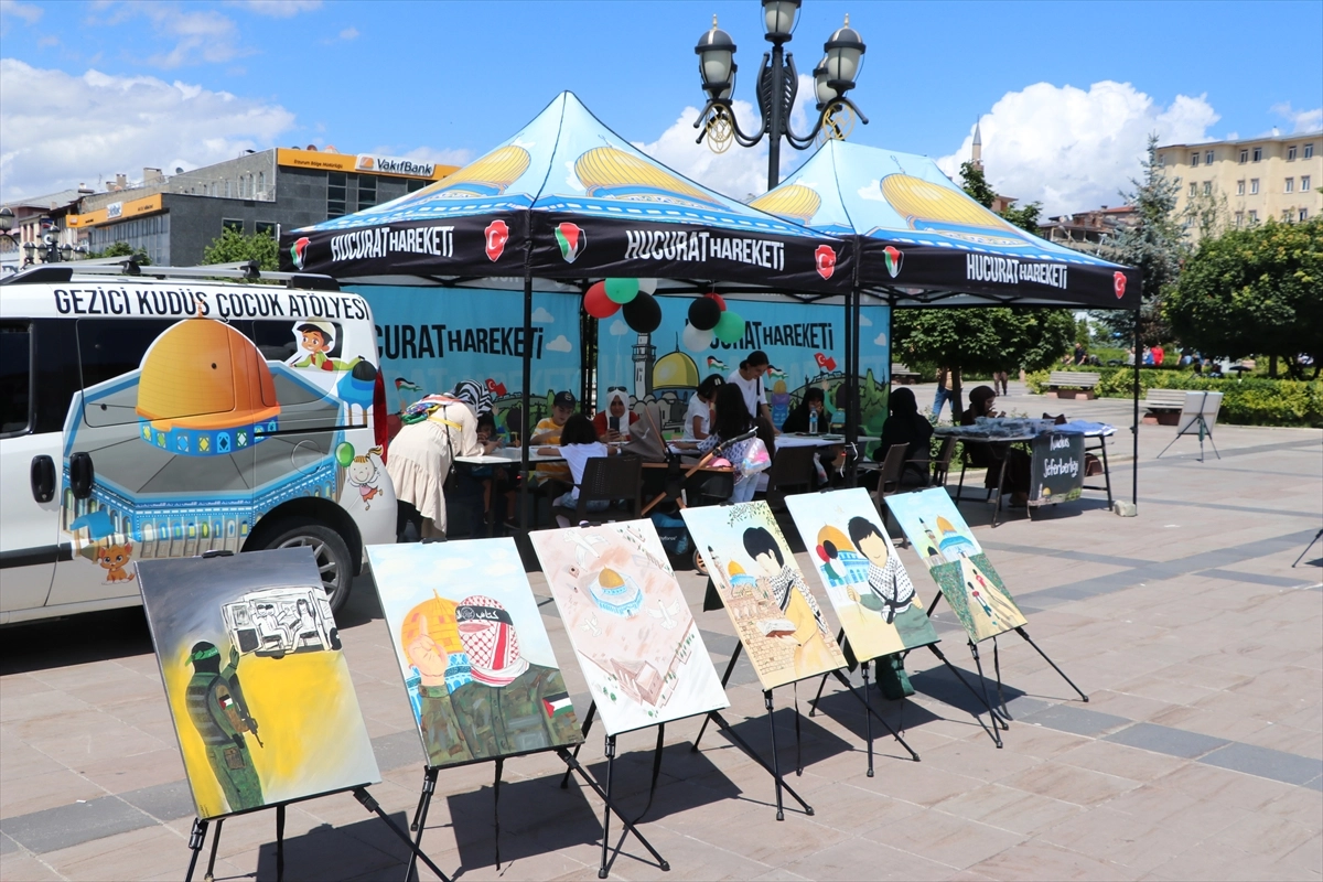 ERZURUM (AA) - İLHAMİ ERKILIÇ - İstanbul'dan yola çıkan Eyüp Güzel ve 18 yaşındaki kızı Şüheda, İsrail'in Gazze'ye yönelik saldırılarını il il dolaşıp çizdikleri resimlerle anlatıyor.