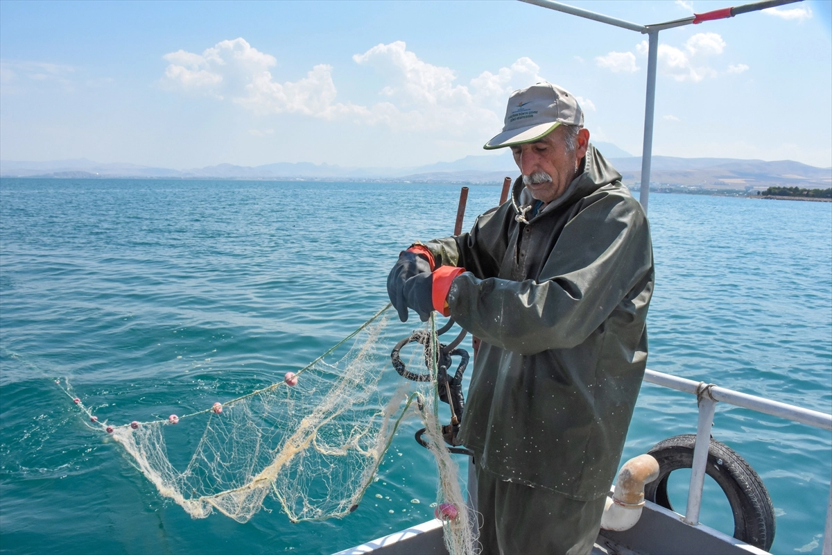 Van Gölü'ne kıyısı bulunan İpekyolu, Edremit, Tuşba, Gevaş, Muradiye ve Erciş ilçeleri ile Bitlis'in Ahlat, Adilcevaz ve Tatvan ilçelerinde günün ilk ışıklarıyla göle açılan balıkçılar, ağlarını sulara bıraktı.