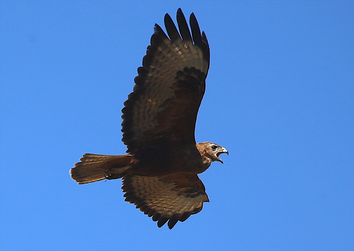 Kızıl şahin, ilçe semalarında gezinirken AA muhabiri tarafından kayda alındı.
