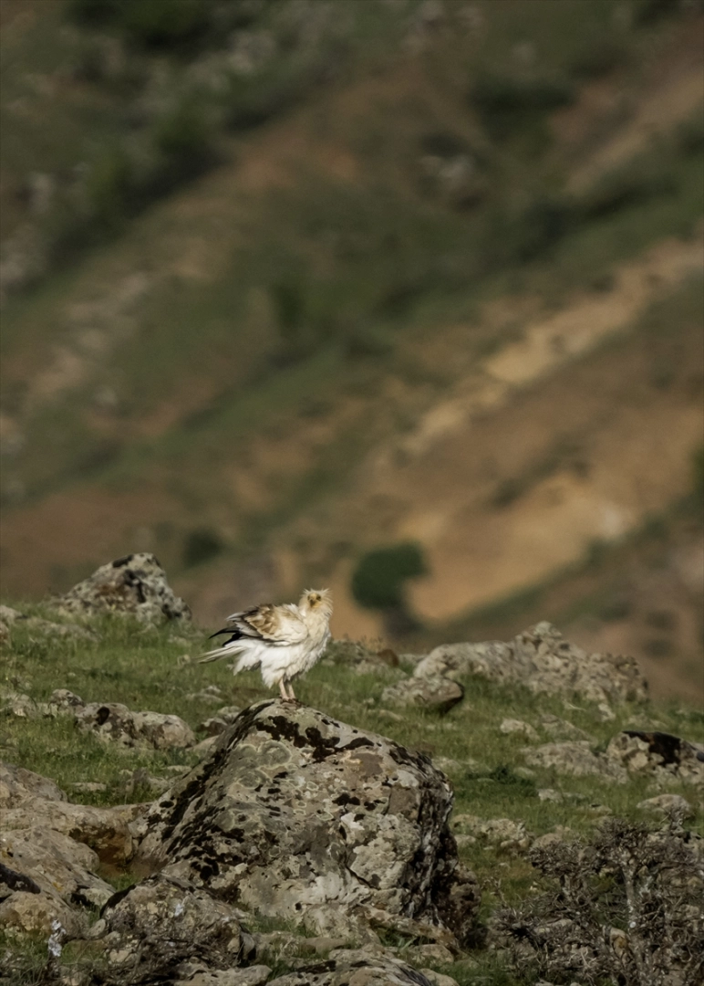 Yırtıcı kuşların göç güzergahları arasında yer alan Bingöl'de, yaz göçmeni olarak bilinen ve nesli tükenme tehlikesi altındaki küçük akbaba, fotoğraf sanatçısı Kenan Nihat Elçi tarafından kent kırsalında görüntülendi.