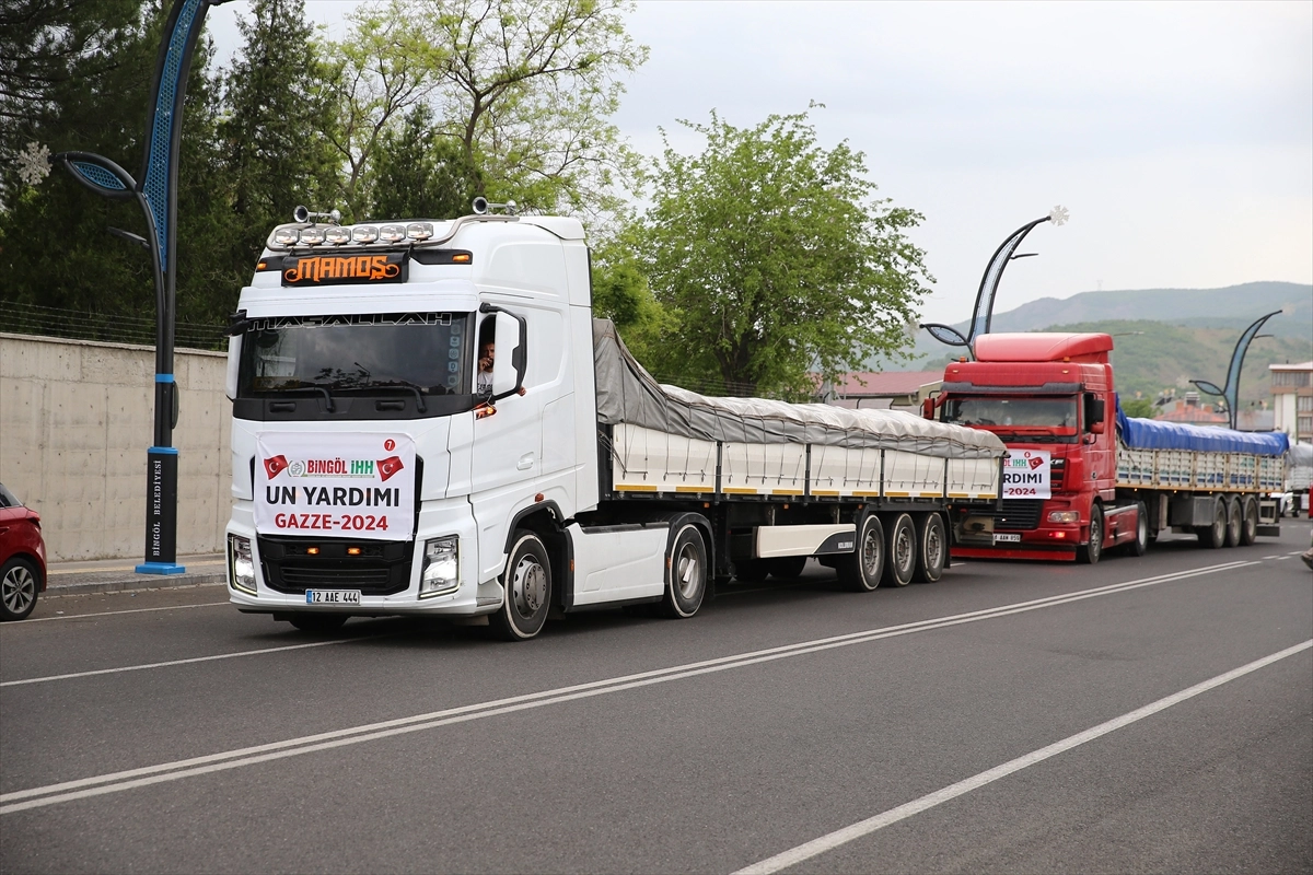 BİNGÖL (AA) - İnsan Hak ve Hürriyetleri (İHH) İnsani Yardım Vakfı tarafından "Özgürlük Filosu Yeniden Yola Çıkıyor" kampanyası kapsamında toplanan unlar, 4 tır ile Bingöl'den Gazze'ye doğru yola çıktı.