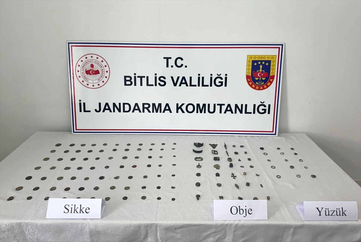 Bu kapsamda, Ahlat'ta gerçekleştirilen operasyonda 2 şüpheli gözaltına alındı. Belirlenen adreslerde yapılan aramada 80 sikke, 36 obje ve 15 yüzük ele geçirildi.