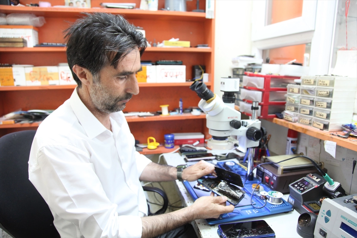 Şehit Summani Görgen Caddesi'nde cep telefonu tamirciliği yapan Yusuf Altıntaş, müşterisinin getirdiği arızalı telefonu tamir etmek istedi.