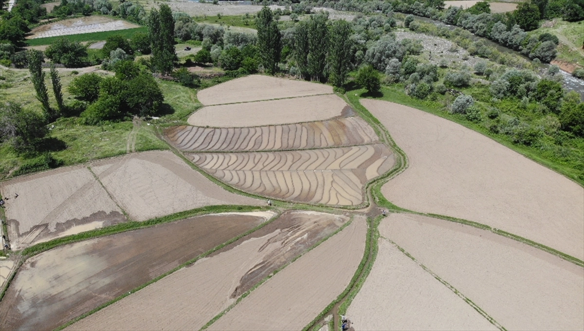 Merkeze 23 kilometre uzaklıktaki Çeltikli köyü sakinleri, tarlalarda oluşturdukları "çeltik tavası" adı verilen alanlarda tohumları toprakla buluşturuyor.