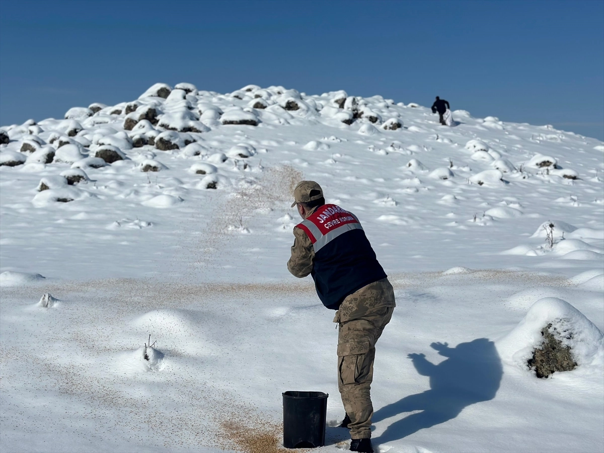 İl Jandarma Komutanlığı Çevre, Doğa ve Hayvanları Koruma Timi, soğuk ve kardan dolayı yiyecek bulmakta zorlanan yaban hayvanları için çalışma yürüttü.