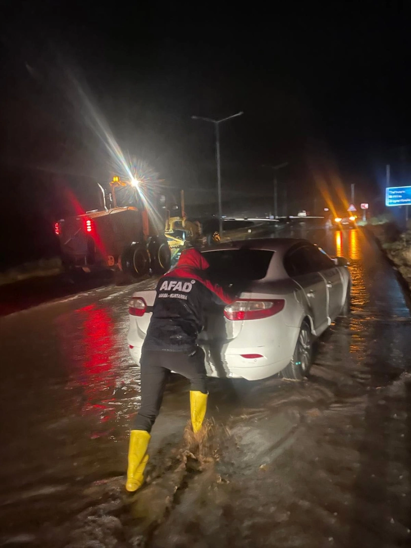 İhbar üzerine bölgeye sevk edilen AFAD ekipleri, mahsur kalan araçları bulundukları yerden çıkardı.