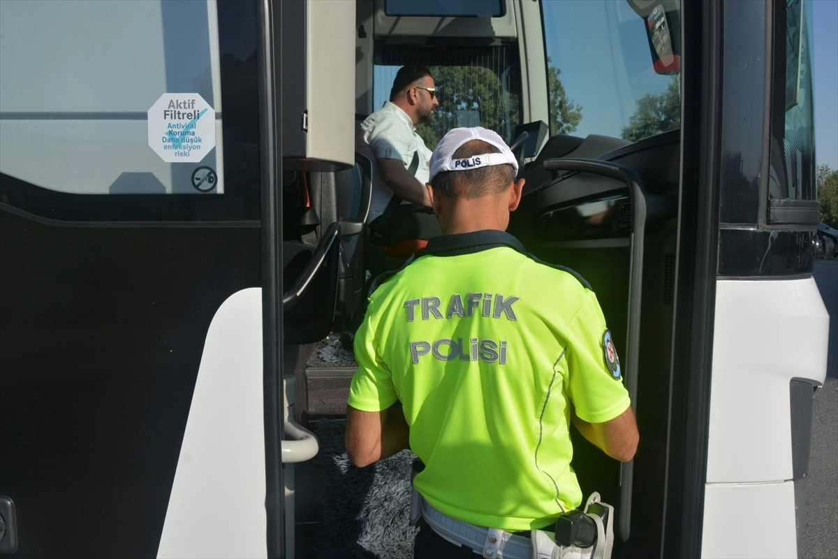 Trafik polisleri, yolcuları da emniyet kemerinin önemi konusunda bilgilendirildi.