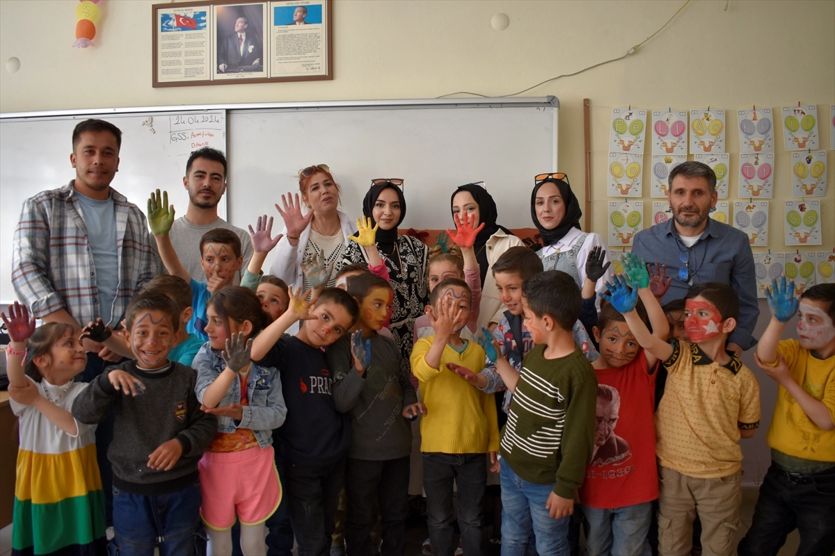 Proje kapsamında Değirmenaltı Köyü İlkokulu'na giden usta öğreticiler, yüzlerini boyadıkları öğrencilerle etkinlikler düzenledi, oyunlar oynadı.
