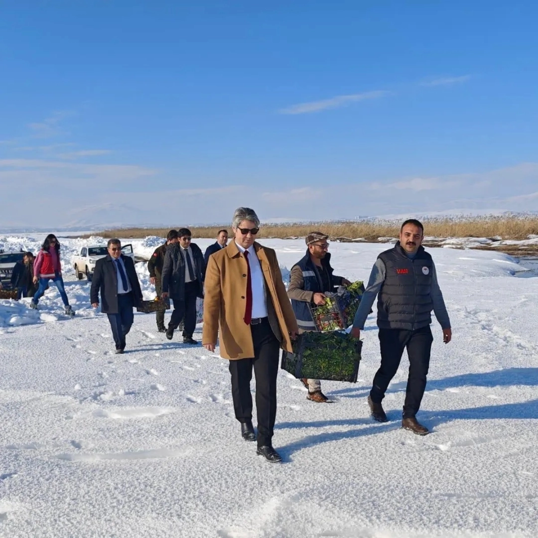 Çaldıran'da etkili olan kar ve olumsuz hava şartları nedeniyle yiyecek bulmakta güçlük çeken yaban hayvanları için çalışma yürütüldü.