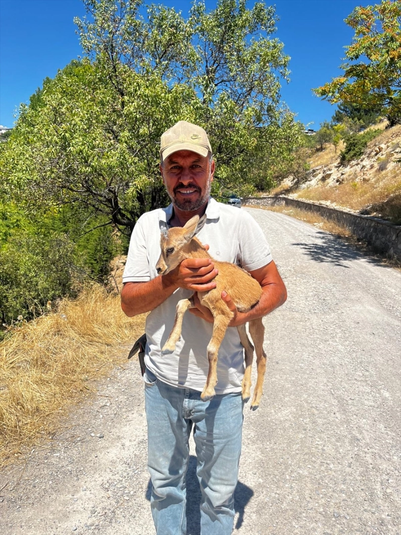 İlçeye bağlı Çukur Mahallesi'ndeki Tekya Mezarlığında, Çemişgezek Belediyesi personeli Hakan Bitgiç, tele sıkışan dağ keçisi yavrusu gördü.