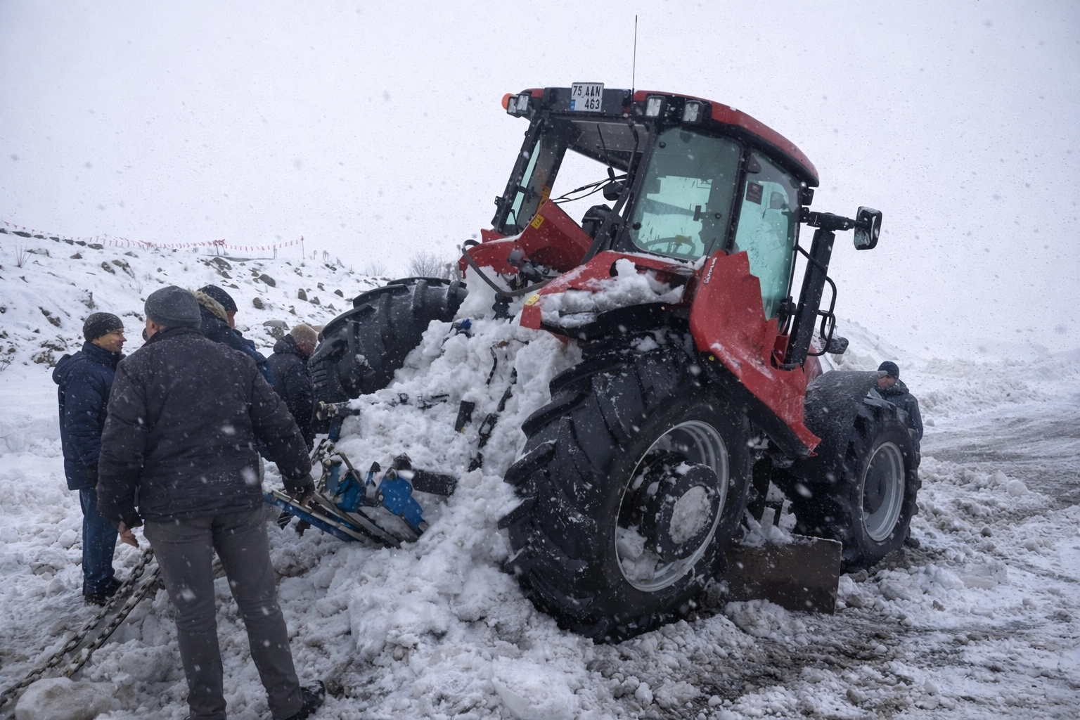 Yüzeyi buzlarla kaplı Çıldır Gölü’nde yürütülen çalışmalar sırasında suya gömülen traktör için kurtarma çalışması başlatıldı. Bölgeye sevk edilen ekipler, özel ekipman ve iş makineleriyle yürüttükleri operasyon sonucu traktörü bulunduğu yerden çıkardı.