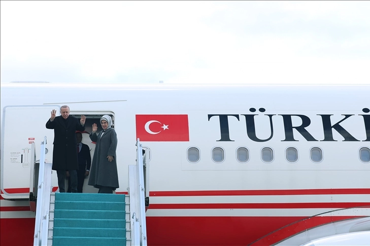 "TUR" uçağıyla Aşkabat Uluslararası Havalimanı'na ulaşan Cumhurbaşkanı Erdoğan, resmi törenle karşılandı.