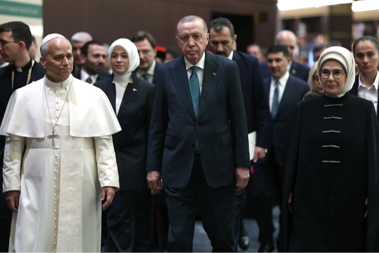 Papa 14. Leo’yu Ankara’da ağırlayan Cumhurbaşkanı Erdoğan, iki liderin görüşmesinde küresel barış, göç, Filistin meselesi ve medeniyetler arası diyalogun ele alındığını belirterek, ziyaretin barış umutlarını artıracağını söyledi.
