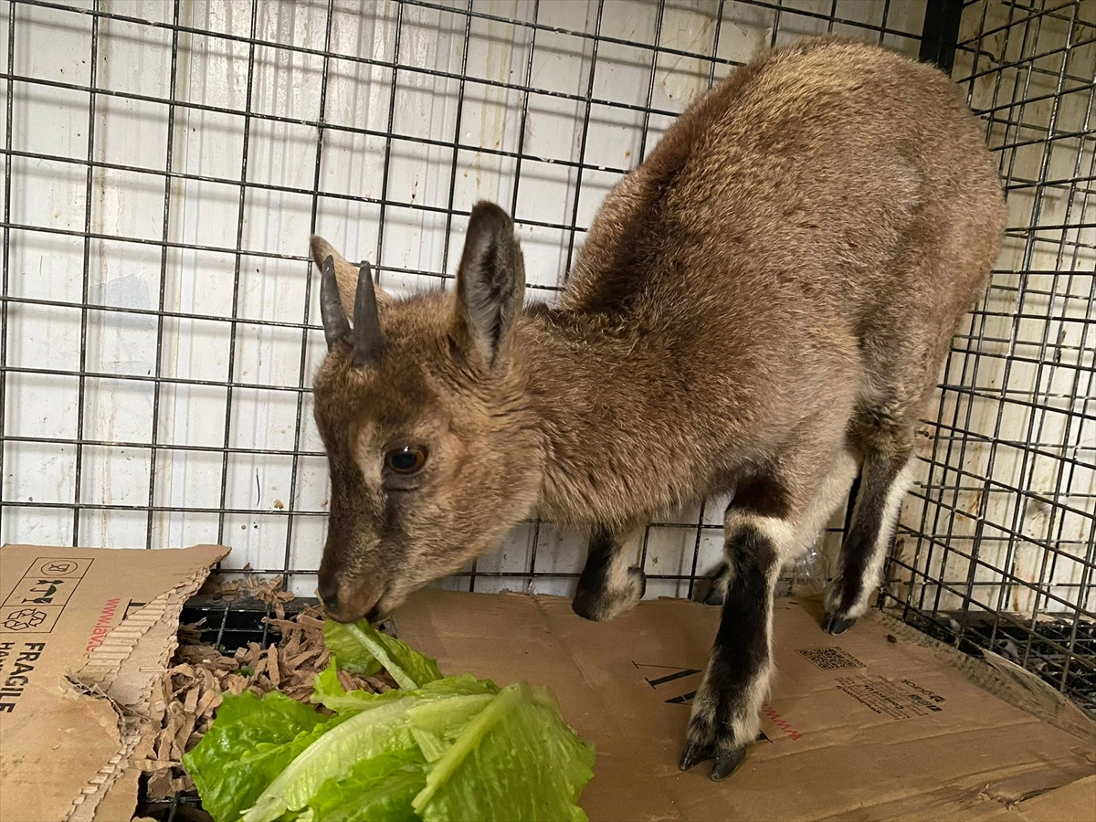 Özenle beslenen ve yapılan muayenelerinde enfeksiyon tespit edilen yaban keçisi, tedavi edilmek üzere Kars Yaban Hayvanları Tedavi ve Rehabilitasyon Merkezi'ne sevk edildi.