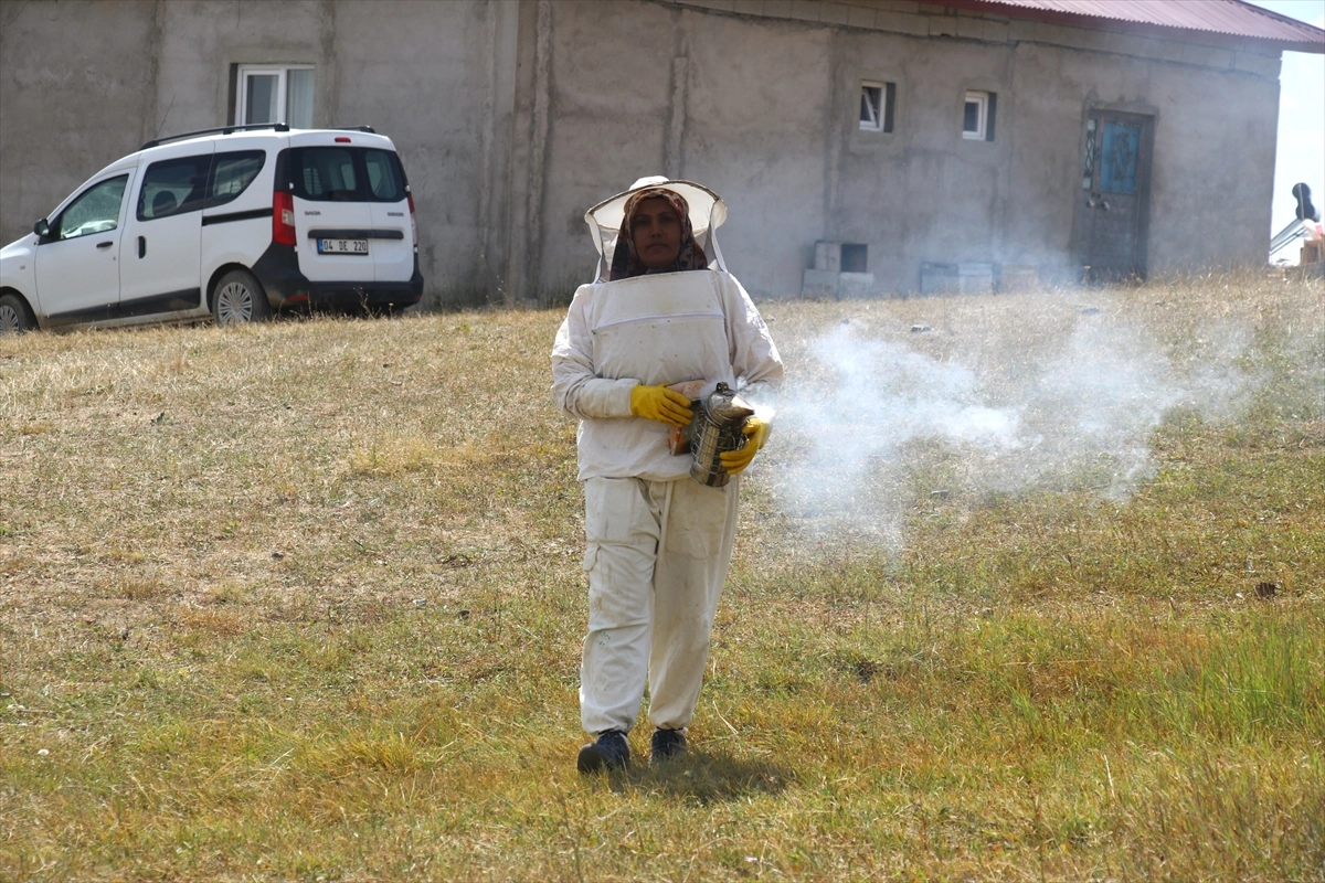 Kentin kuzeyinde Kars sınırında bulunan 2 bin 400 rakımlı Yukarı Pamuktaş köyünde yaşayan Rukiye Gökçe, 15 yıl önce eşi Mehmet'in 5 kovan almasıyla arıcılığa başladı.