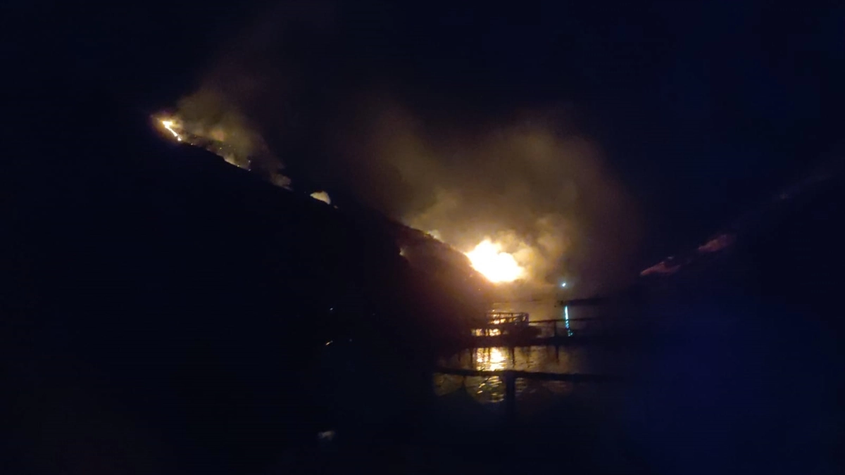 Öte yandan, bölgedeki yangın, Fırat Nehri üzerindeki bir alabalık çiftliğinin güvenlik kamerasınca kaydedildi.