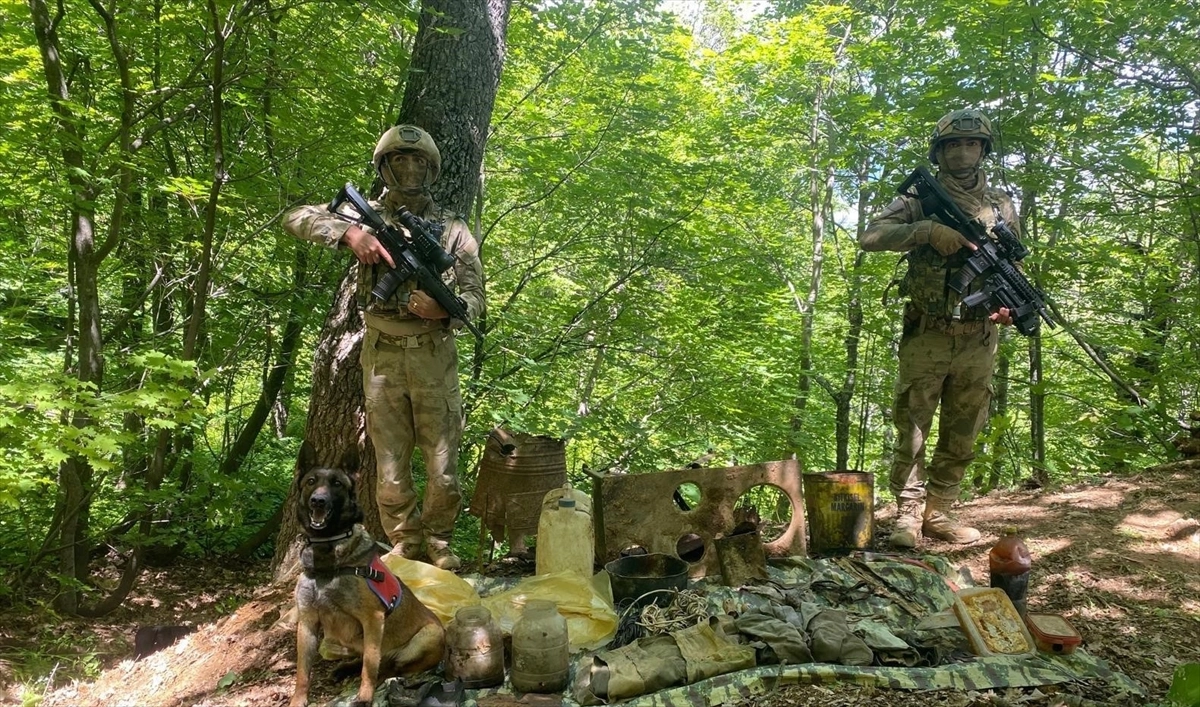 Sığınakta gerçekleştirilen aramada, el yapımı patlayıcı yapımında kullanılan malzemeler ile gıda, giyim ve yaşam malzemesi bulundu.