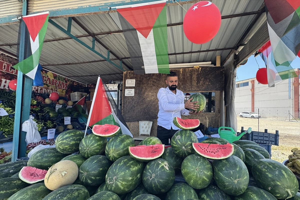 Yıldız, "Tezgahımda sergilediğim her karpuz dilimi, Filistinli gençlerin asil direnişini bana hatırlatıyor. Filistin halkına destek olmak amacıyla karpuz tezgahımı ve çevresini Filistin bayrakları ile donattım." diye konuştu.