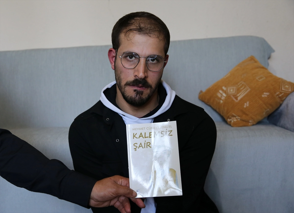 BİTLİS (AA) - ŞENER TOKTAŞ - Bitlis'in Mutki ilçesinde ellerini kullanamayan serebral palsili 31 yaşındaki Mehmet Cüneyt Temizel, burnuyla cep telefonunun ekranına dokunarak yazdığı şiir ve hikayelerle "Kalemsiz Şair" adlı kitap çıkardı.