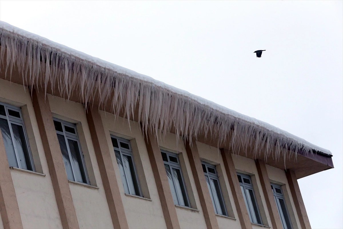 Göl ve akarsuların yüzeyinin buz tuttuğu kentte, bina çatılarında buz sarkıtları oluştu.