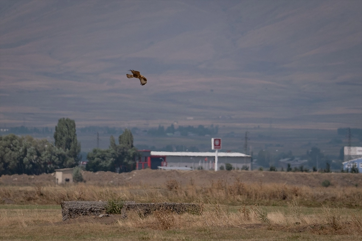 Erzurum Ovası'ndaki sulak alanlar göçe başlayan kuşların dinlendiği rotalar arasında bulunurken yabani hayvanlara geniş yaşam alanı sunan bölgede avlanmaya çalışan kızıl şahinler görüldü.