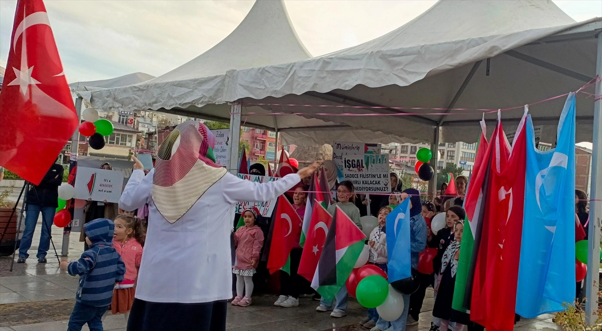 Erzurum Kalesi önünde bir araya gelen doktorlar, tıp ve eczacılık fakültesi öğrencileri, sağlık çalışanları ve bazı sivil toplum kuruluşlarının temsilcileri ile vatandaşlar, Türk ve Filistin bayraklarıyla yürüdü.