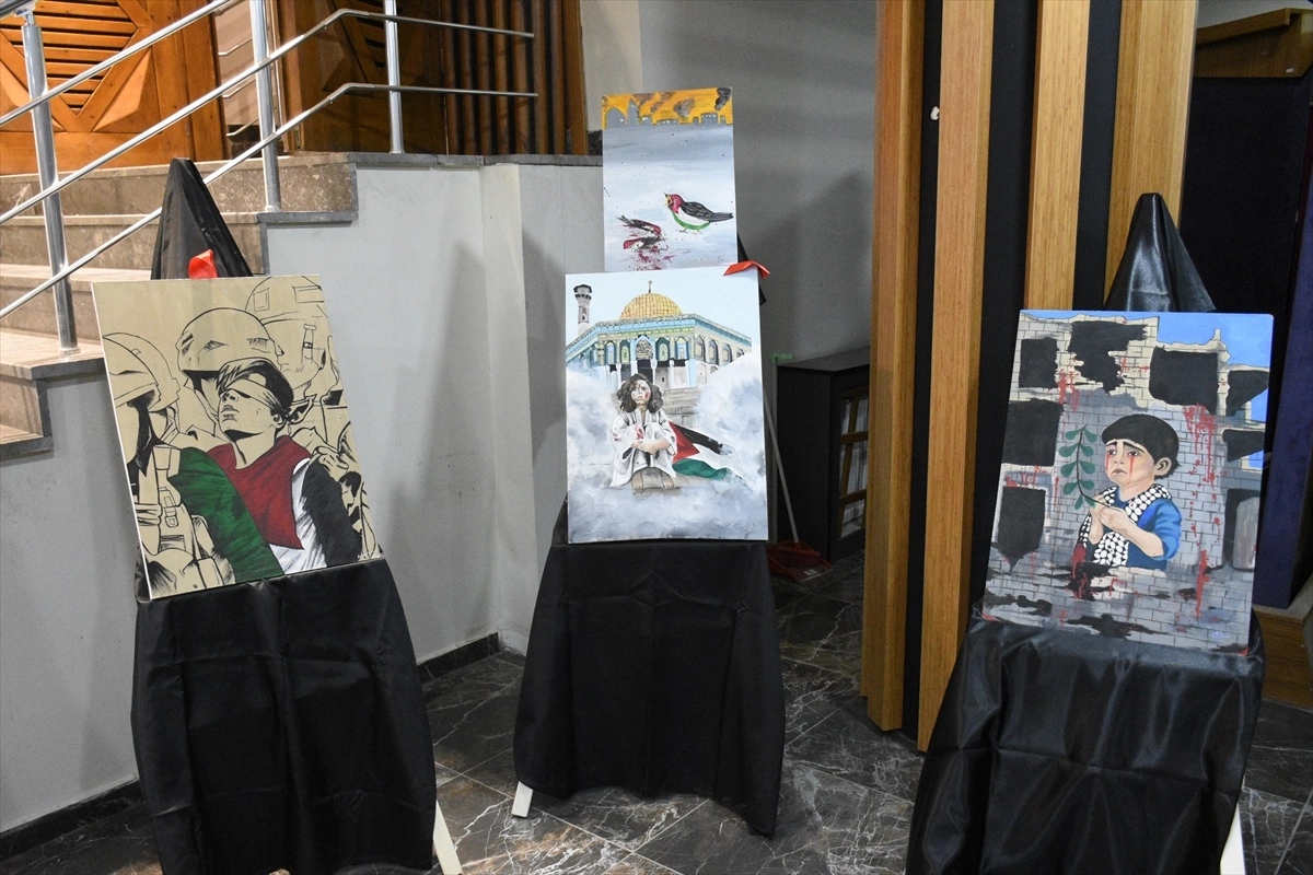 ERZURUM (AA) - Erzurum'da eğitim gören üniversiteli öğrenciler, İsrail'in Gazze'ye saldırısını konu alan Fırçam'ın Sesi resim sergisi ve konser etkinliği gerçekleştirdi.