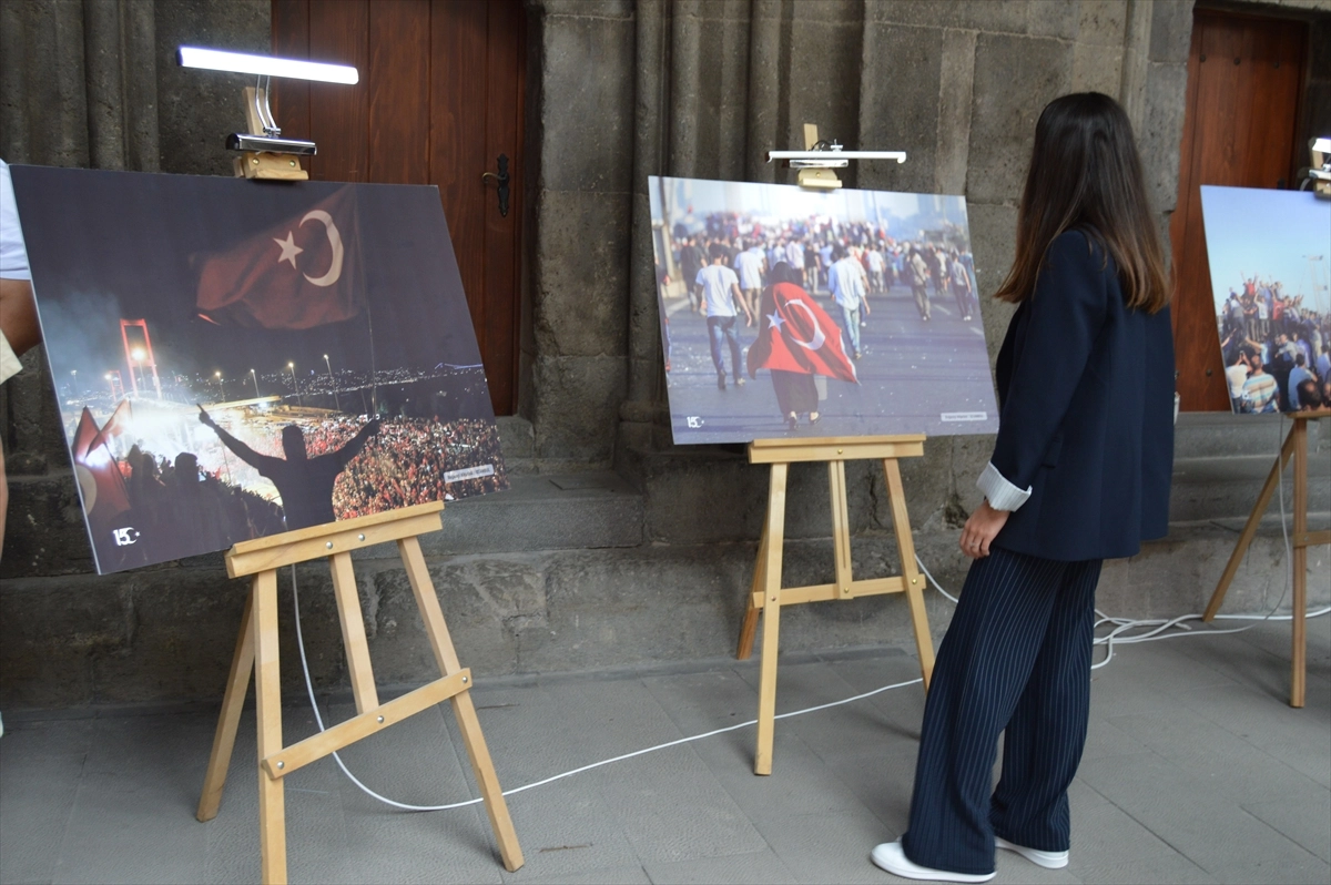 Çifte Minareli Medrese'de açılan sergide, darbe girişimi günü ve sonrasında çekilen fotoğraf ve yapay zeka ile oluşturulan resim sergileniyor.