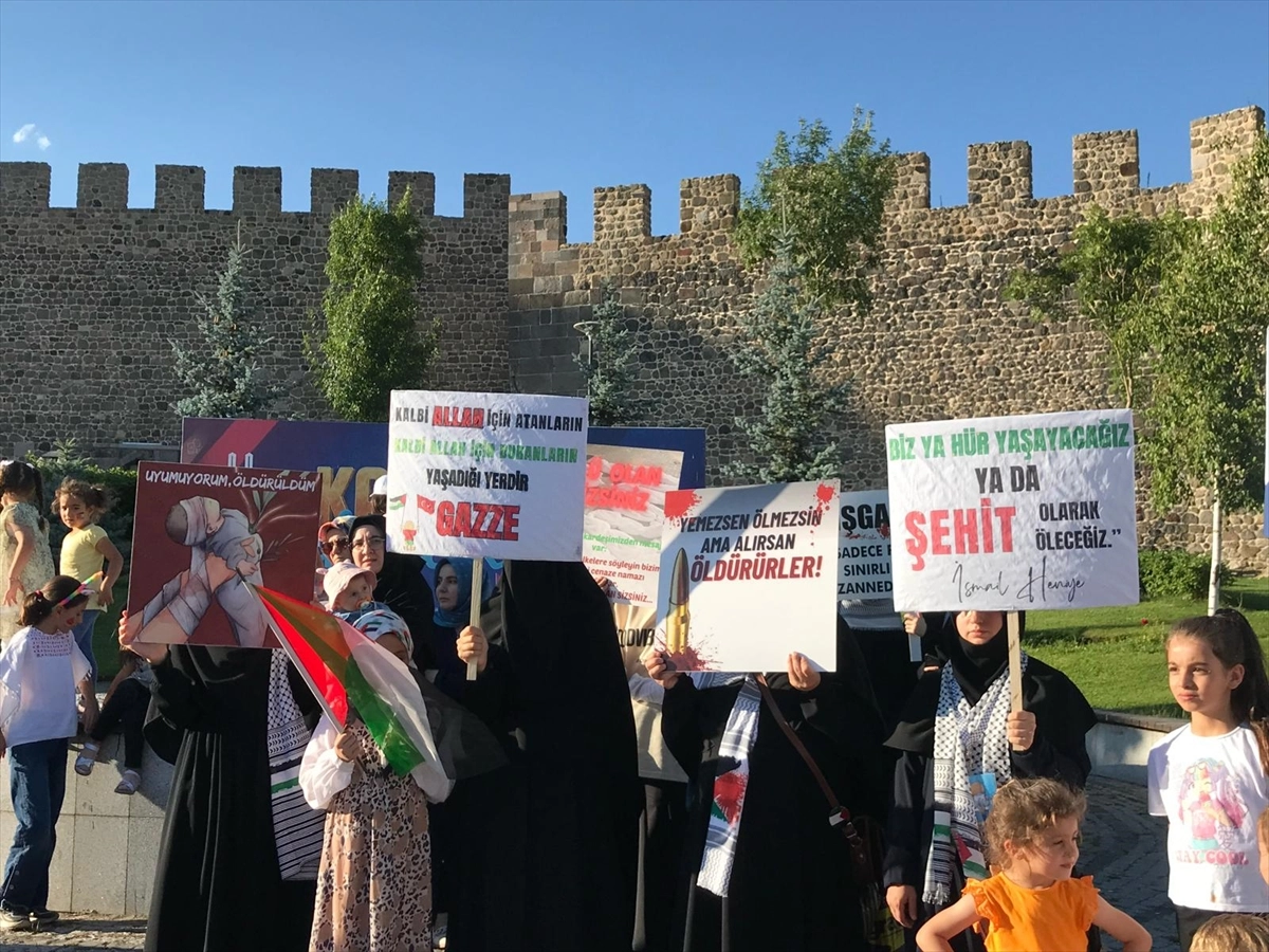 Kent merkezindeki Erzurum Kalesi önünde bir araya gelen doktorlar, tıp ve eczacılık fakültesi öğrencileri, sağlık çalışanları ile vatandaşlar, Türk ve Filistin bayrakları eşliğinde taşıdıkları döviz ve pankartlarla kale önündeki park ve etkinlik alanında yürüdü.