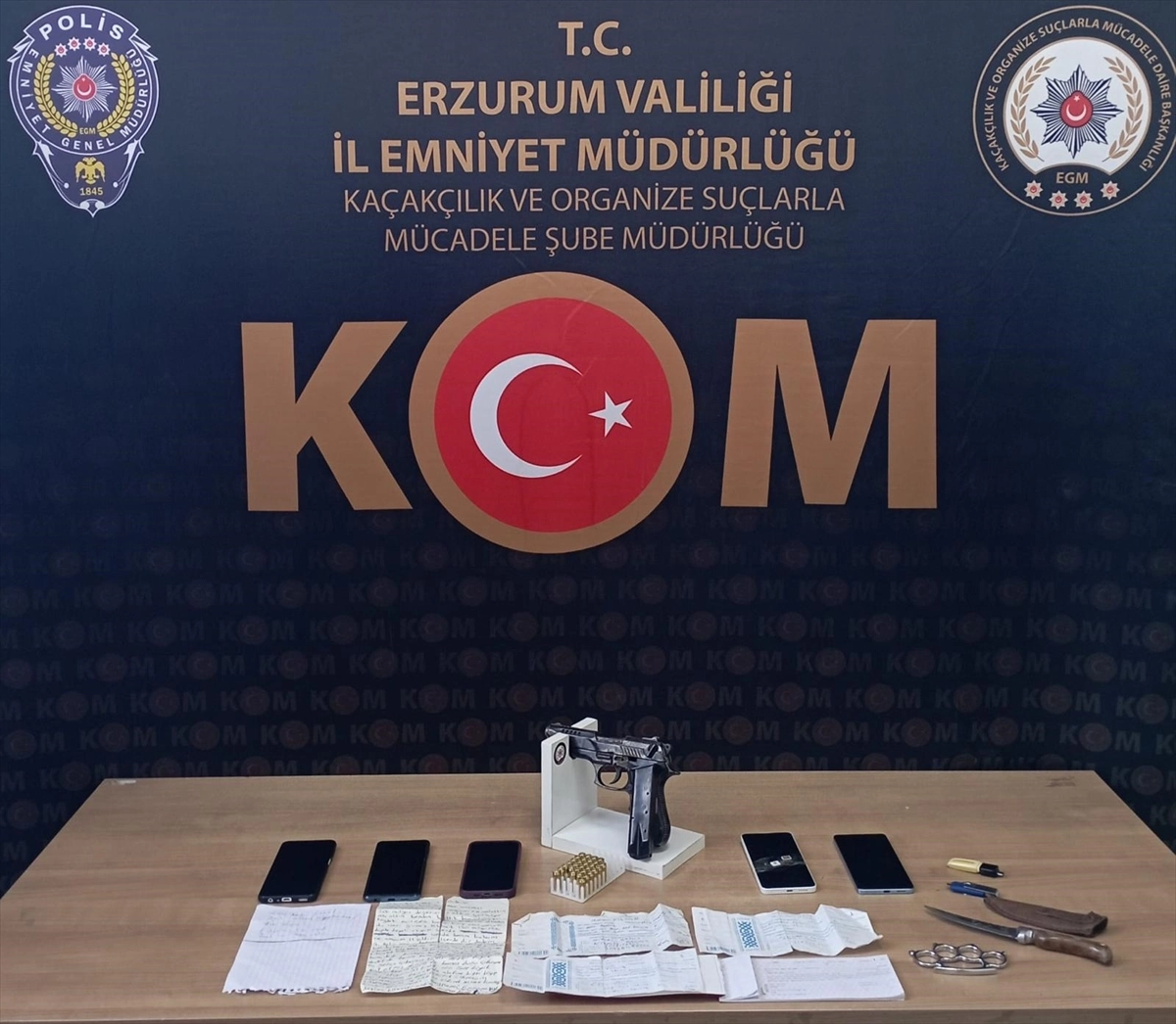 Şüphelilere ait ikamet, iş yeri ve araçlarda yapılan aramalarda, bir ruhsatsız tabanca ve buna ait 34 mermi, 22 boş senet, 3 dolu senet, alacak bilgilerinin bulunduğu defter ele geçirildi.