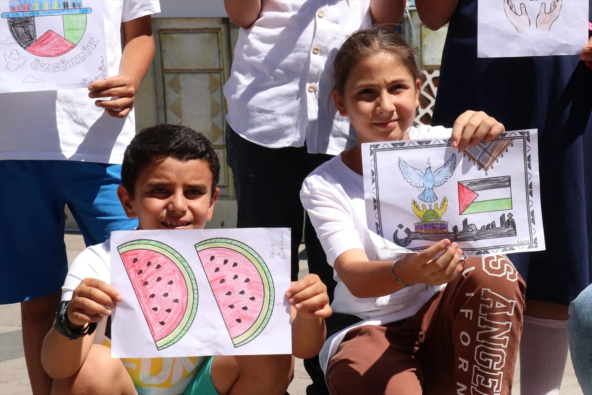 TÜGVA'nın çocuklara yönelik kentte düzenlediği yaz kurslarında yaklaşık 3 bin öğrenci, İsrail'in 7 Ekim'den bu yana Filistin'e yönelik düzenlediği saldırılara dikkati çekmek için anlamlı etkinliklere katılıyor.
